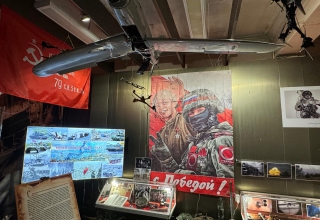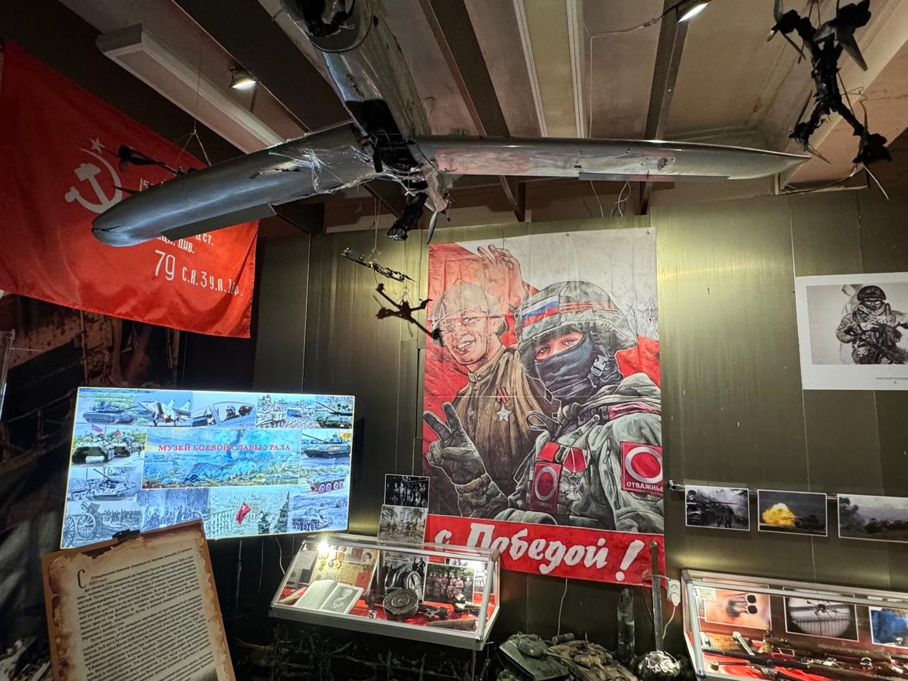 На втором этаже музея представлены десятки образцов трофейного стрелкового оружия производства стран НАТО, обломки сбитых российскими бойцами дронов, шевроны и форма украинских националистов и иностранных наёмников. Все эти экспонаты доставлены в Екатеринбург непосредственно из зоны СВО бойцами группировки Центр.
