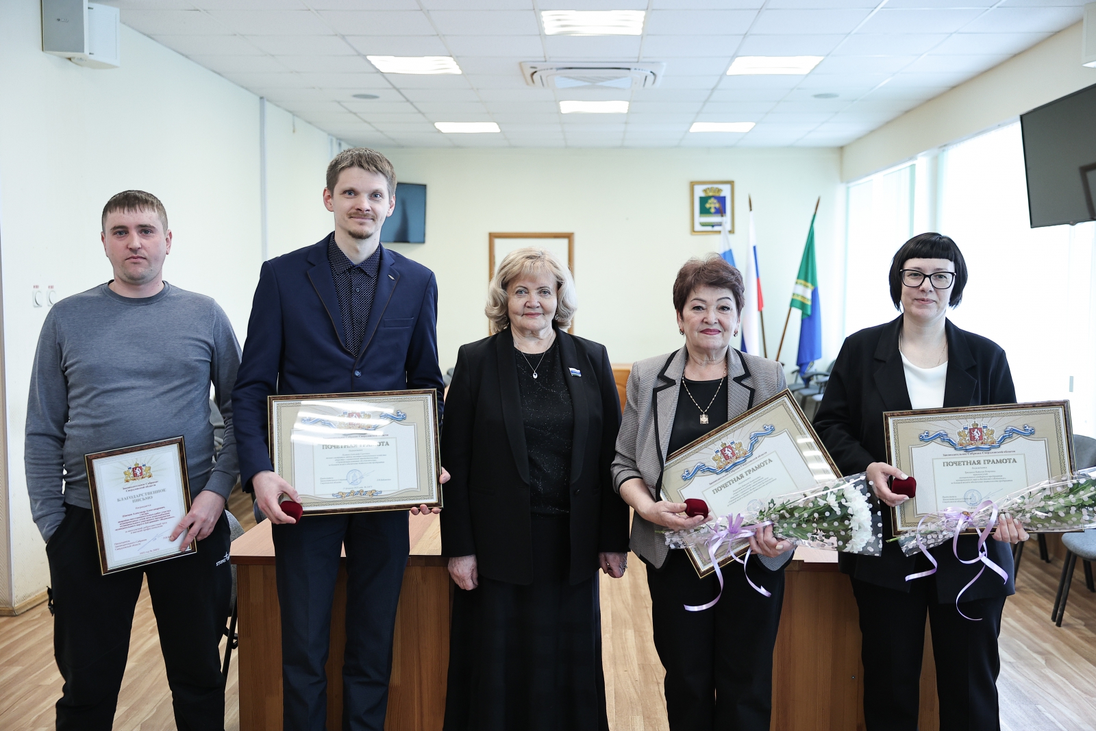 Спикер Заксобрания также поздравила с прошедшим на днях Днём работников бытового обслуживания населения и жилищно-коммунального хозяйства специалистов этой сферы. Лучшим из них вручила грамоты и благодарственные письма Законодательного Собрания Свердловской области.