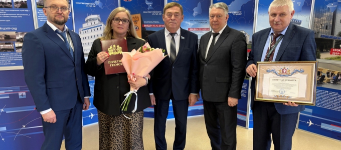 Валентин Лаппо по поручению Людмилы Бабушкиной вручил почётную грамоту Законодательного Собрания Свердловской области начальнику службы эксплуатации радиотехнического оборудования и связи филиала «Аэронавигация Урала» Владимиру Прокофьеву отметив его значительный вклад в развитие гражданской авиации и высокий профессионализм.