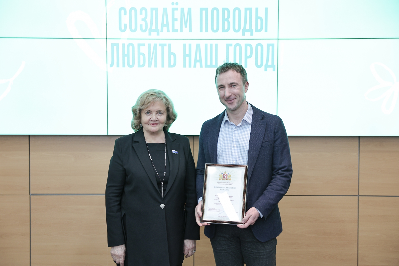 За значительный вклад в развитие строительного комплекса региона Людмила Бабушкина наградила почётным золотым знаком Законодательного Собрания Свердловской области основателя компании Валерия Ананьева, а также вручила восьми сотрудникам компании почётные грамоты и благодарственные письма Законодательного Собрания Свердловской области.