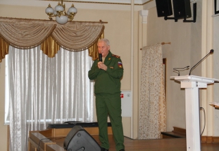 Начальник воспитательного отдела Екатеринбургского СВУ полковник Владимир Копылов поделился с гостями опытом воспитательной работы с суворовцами, рассказал об истории одного из старейших в стране суворовских училищ, воспитанники которого участвовали 24 июня 1945 года в Параде Победы на Красной площади.
