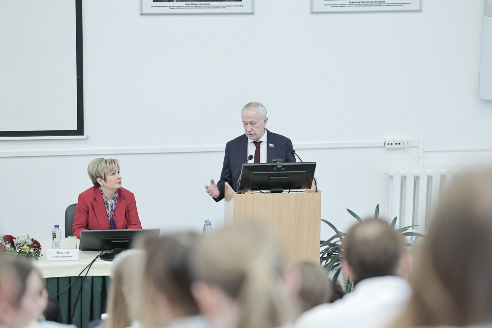 «Целевой контракт – это хороший механизм «точечной» подготовки будущих врачей, особенно в ситуации кадрового дефицита. Благодаря этой системе больницы получают через 6 лет молодых специалистов именно тех направлений, в которых остро нуждаются медучреждения. А молодые врачи уверены, что после обучения они гарантированно получат рабочее место. Но всегда есть человеческий фактор. Шестилетнее обучение – приличный срок: кто-то решает пойти в ординатуру, у кого-то возникают другие обстоятельства. Возникает много вопросов, и подобные встречи – это возможность задать их всем будущим работодателям для совместного решения возникших проблем», – заявил Вячеслав Погудин.