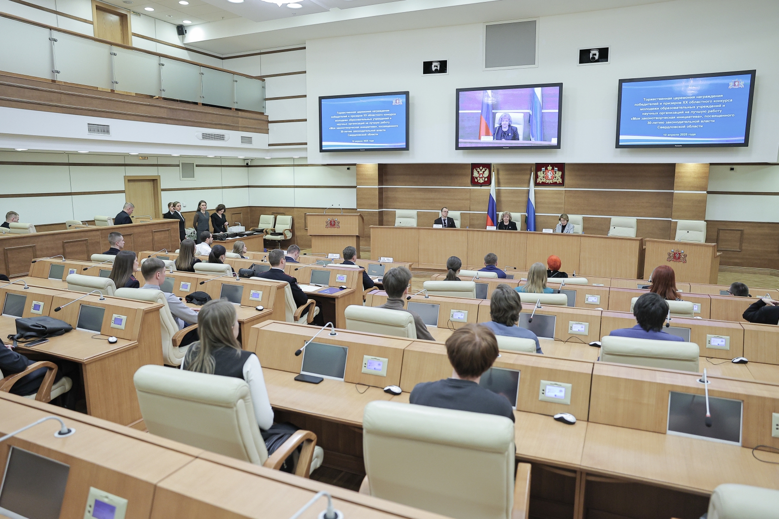 В Законодательном Собрании состоялась торжественная церемония награждения победителей и призёров XX областного конкурса молодёжи образовательных учреждений и научных организаций на лучшую работу «Моя законотворческая инициатива», посвящённого 30-летию законодательной власти Свердловской области.