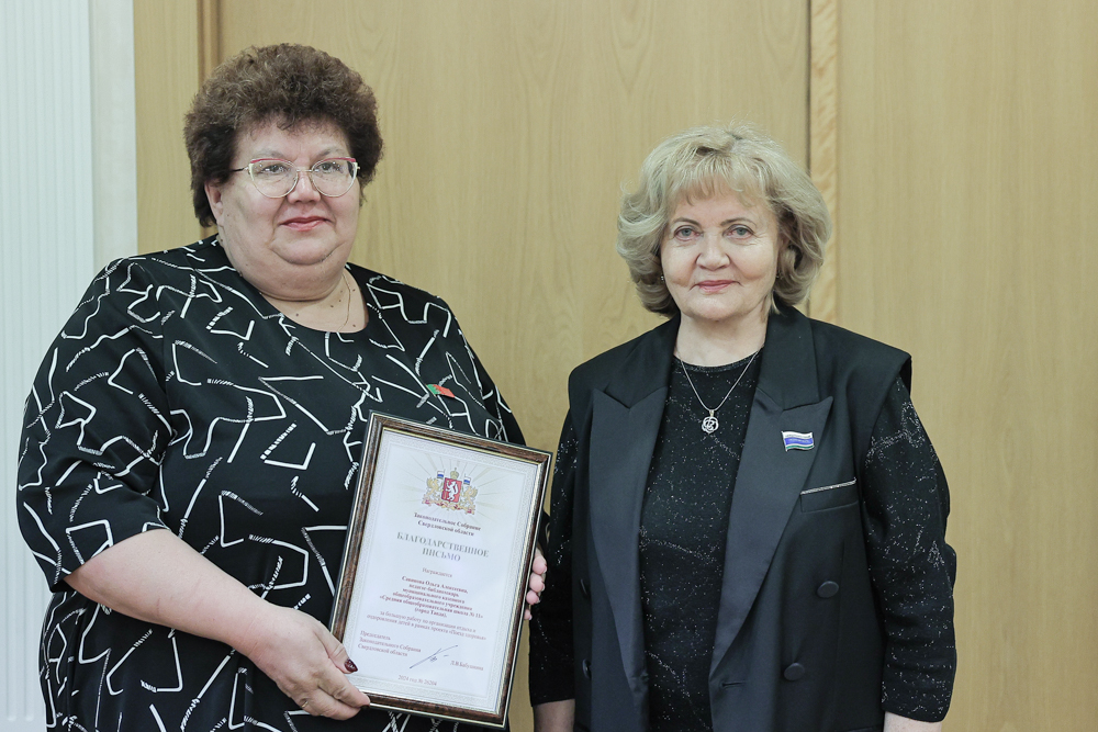 В ходе заседания также состоялась церемония награждения Серебряным знаком Законодательного Собрания Свердловской области и благодарственными письмами Законодательного Собрания Свердловской области лучших специалистов по итогам реализации проекта «Поезд здоровья» в 2024 году.