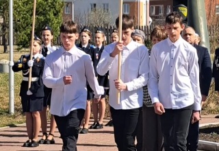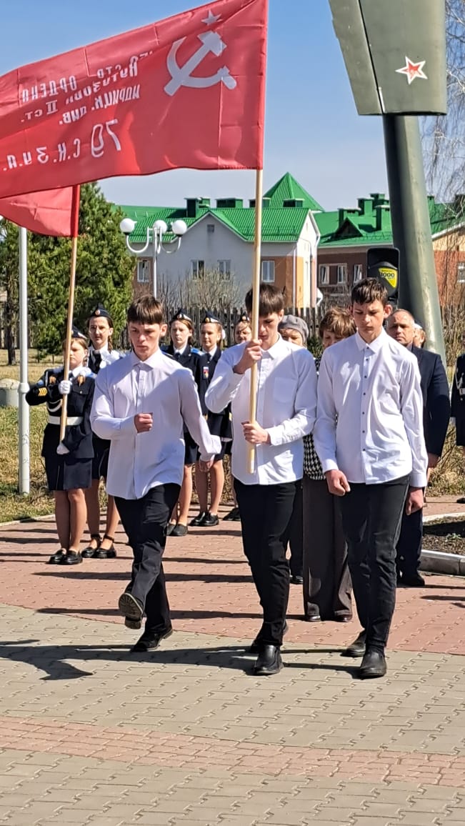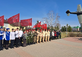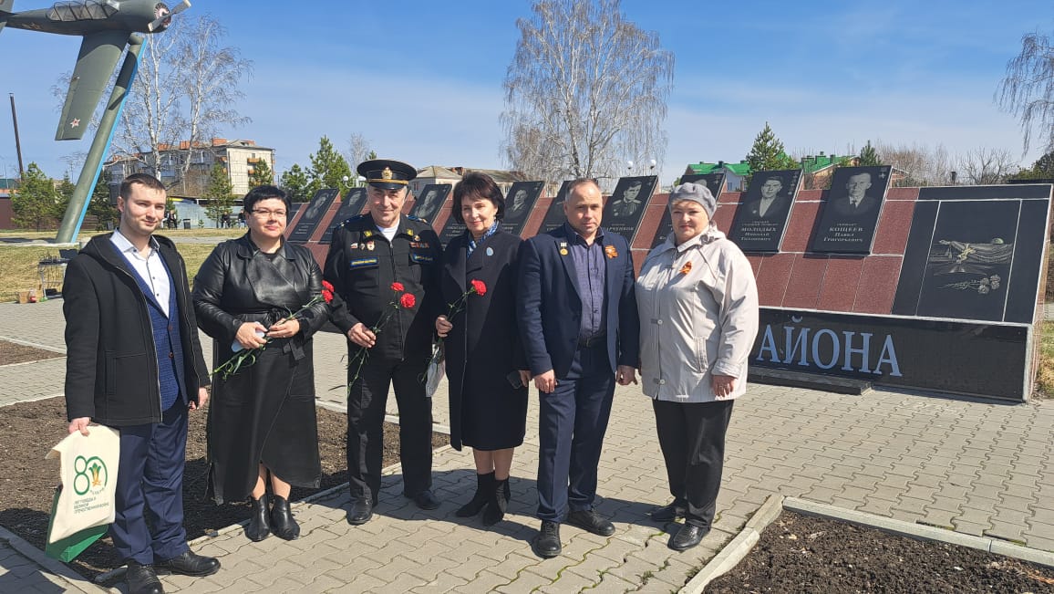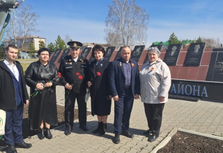 В знак благодарности погибшим защитникам Отечества возложили цветы к мемориалу и почтили их память минутой молчания.