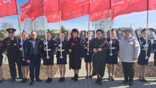 В знак благодарности погибшим защитникам Отечества возложили цветы к мемориалу и почтили их память минутой молчания.