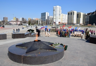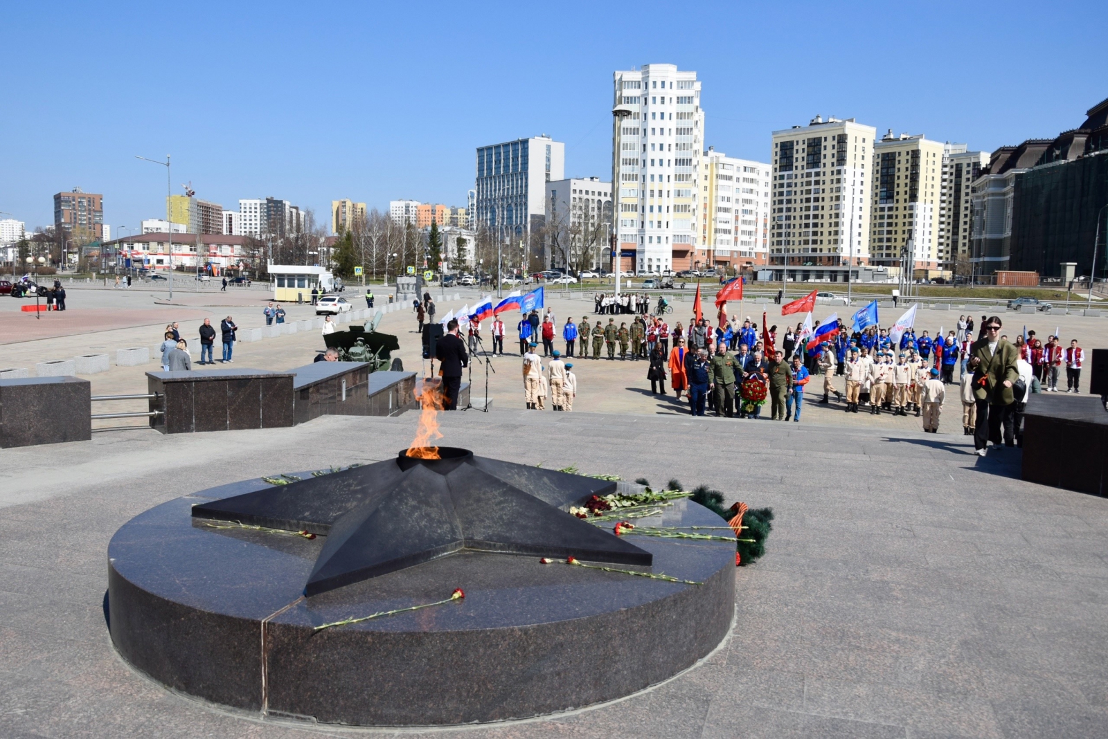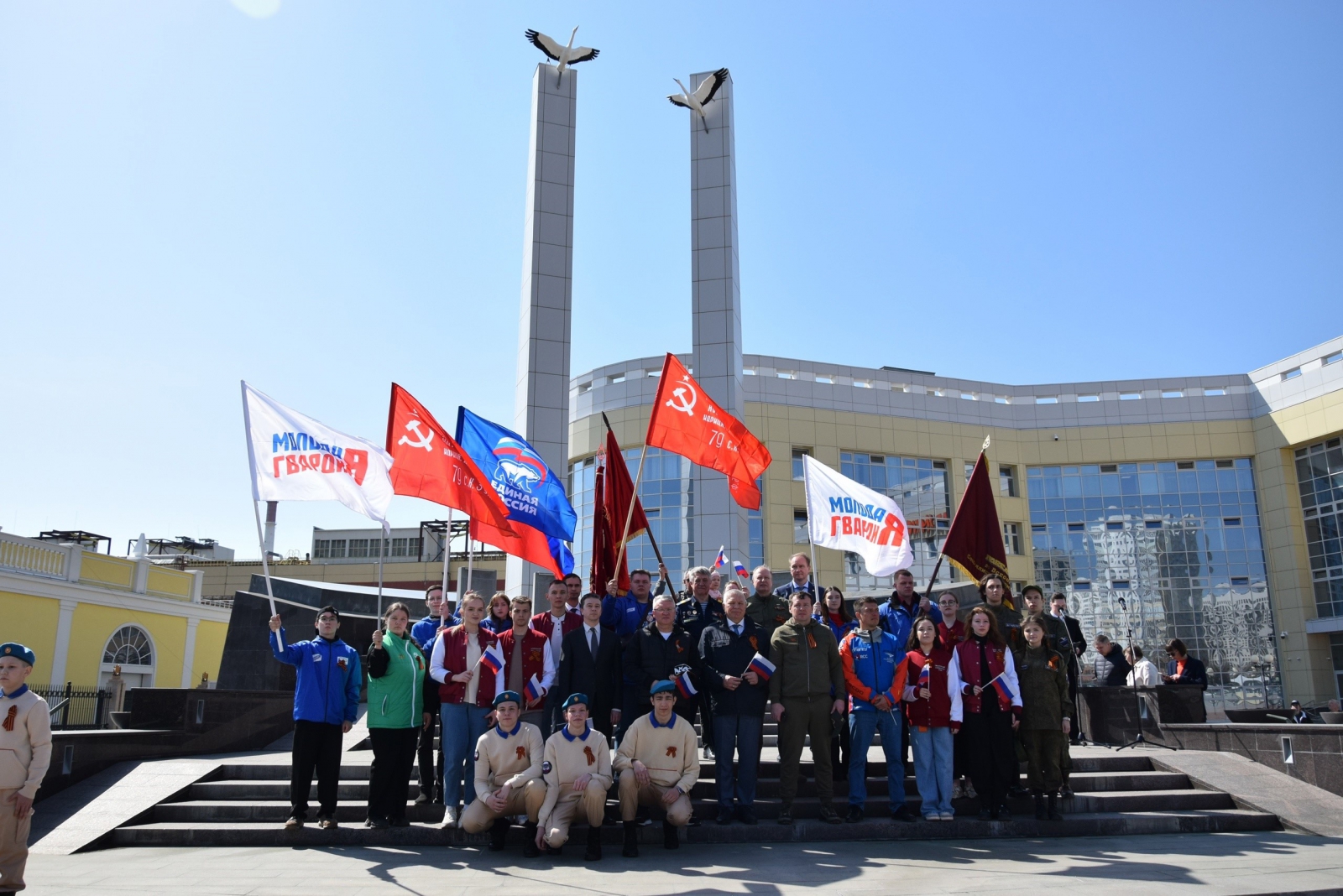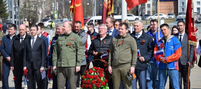 У стелы Город трудовой доблести в Екатеринбурге участники возложили цветы в память о героях Великой Отечественной войны.