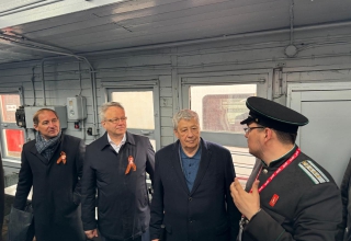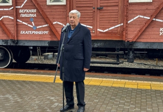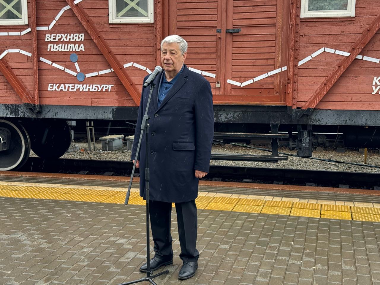 Он поблагодарил свердловских железнодорожников за реализацию проекта «Эшелон Победы» и поздравил всех с приближающимся 80-летием Великой Победы.
