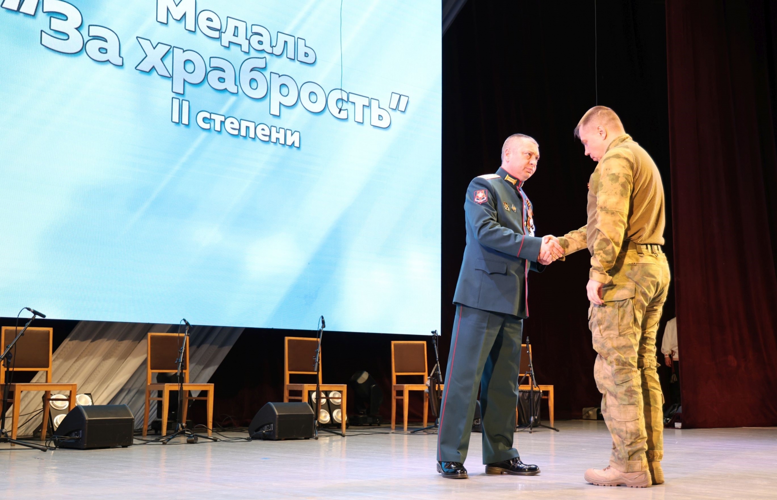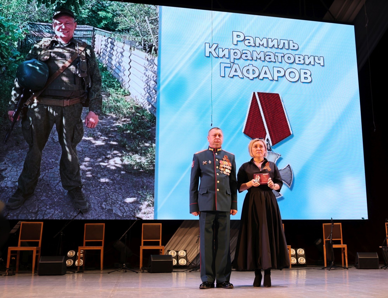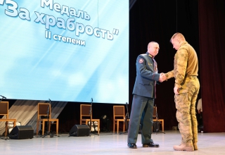 Вместе с залом парламентарий аплодировал современным каменским героям, которые четвертый год защищают жителей Донбасса и Новороссии от украинских фашистов. На торжественном собрании военный комиссар Каменска-Уральского и Каменского района вручил медали «За храбрость» трём добровольцам и Ордена Мужества семьям пяти каменцев, погибших при исполнении воинского долга.