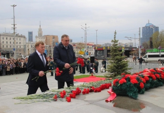Депутат также принял участие в торжественной церемонии возложения цветов к памятнику «Уральский добровольческий танковый корпус».
