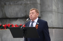 Депутат также принял участие в торжественной церемонии возложения цветов к памятнику «Уральский добровольческий танковый корпус».