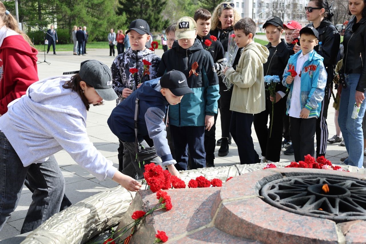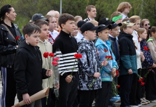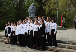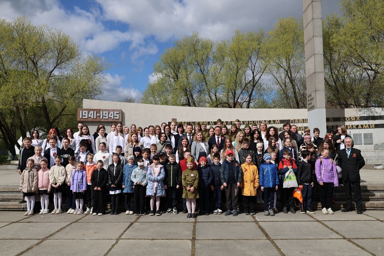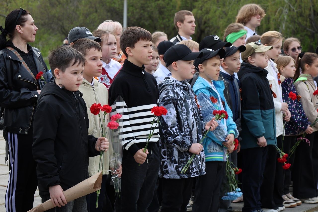Главными участниками торжественной церемонии возложения цветов к обелиску стали ученики и педагоги трёх школ, а также студенты педагогического колледжа. Ребята читали стихи и пели песни военной поры, исполнили танцевальные композиции.