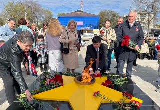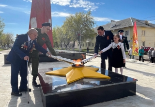 «Ещё одно знаковое для Сухого Лога событие – это запуск Вечного Огня у подножия обелиска Славы, – сообщает Михаил Зубарев. – С главой муниципального округа Рафаилом Мингалимовым возложили цветы к обелиску и к памятникам Героям. Второй вечный огонь зажжён 9 мая у мемориала погибшим воинам в селе Курьи».