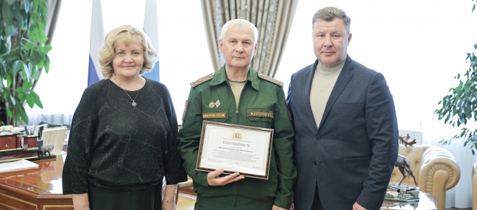 Она вручила Владиславу Майорову благодарственное письмо «за проведение масштабной исследовательской работы, подготовку уникальных материалов к выпуску информационного календаря «Вклад Урала в Победу», а также за проведение в Законодательном Собрании Свердловской области лекций, посвящённых 80-летию Победы в Великой Отечественной войне 1941-1945 годов».
