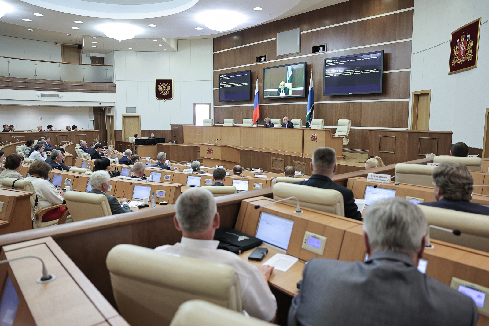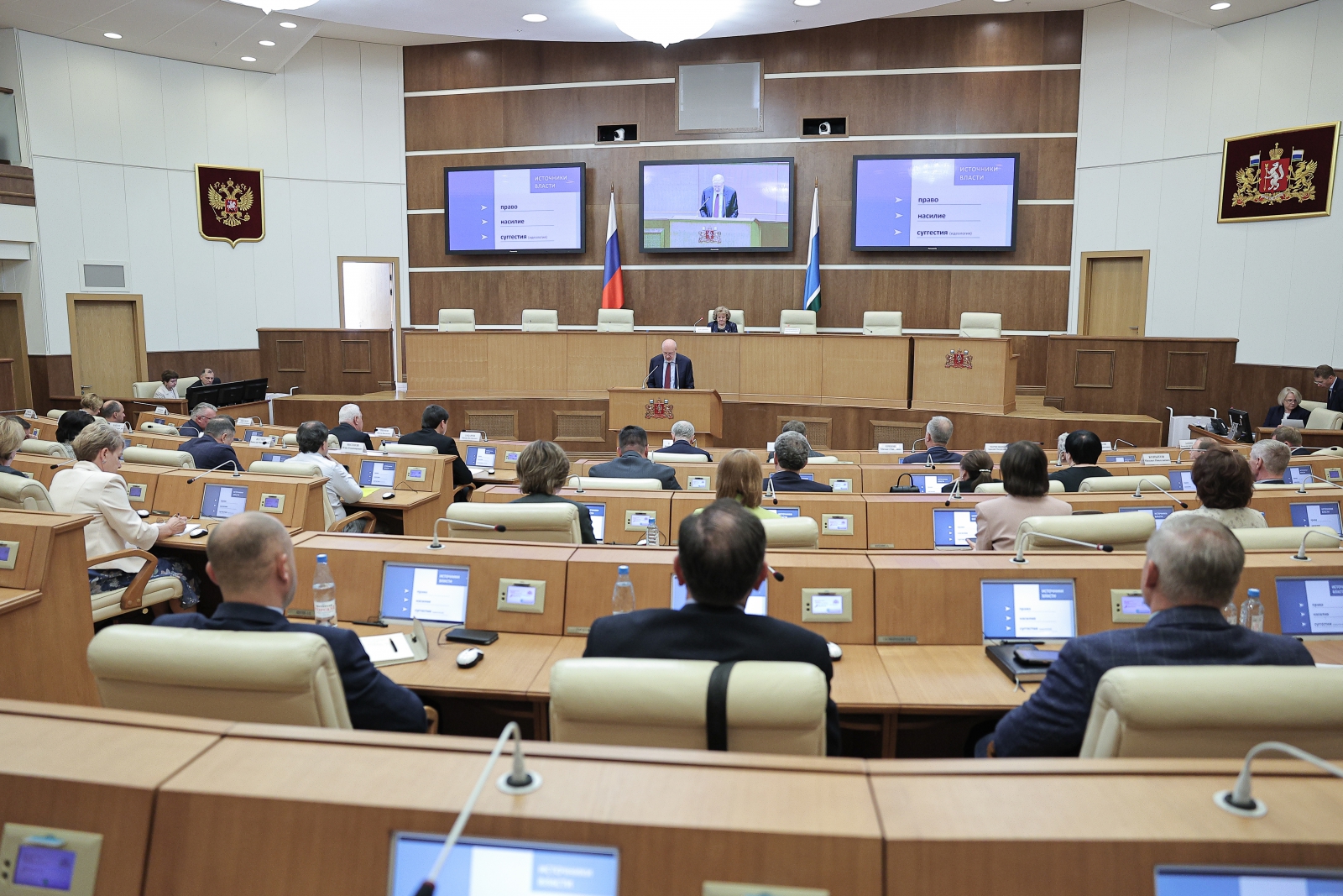 Председатель Законодательного Собрания Людмила Бабушкина и председатель Комитета Государственной Думы по государственному строительству и законодательству Павел Крашенинников провели совместное заседание Ассамблеи Свердловского регионального объединения «Депутатская вертикаль» и Совета представительных органов муниципальных образований Свердловской области.