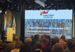 От имени Людмилы Бабушкиной Михаил Клименко зачитал поздравительный адрес, в котором в частности говорилось: филиал Фонда вовлекает ветеранов специальной военной операции в общественные проекты Среднего Урала, направленные на патриотическое воспитание граждан России, сохранение исторической памяти и укрепление традиционных духовно-нравственных ценностей.