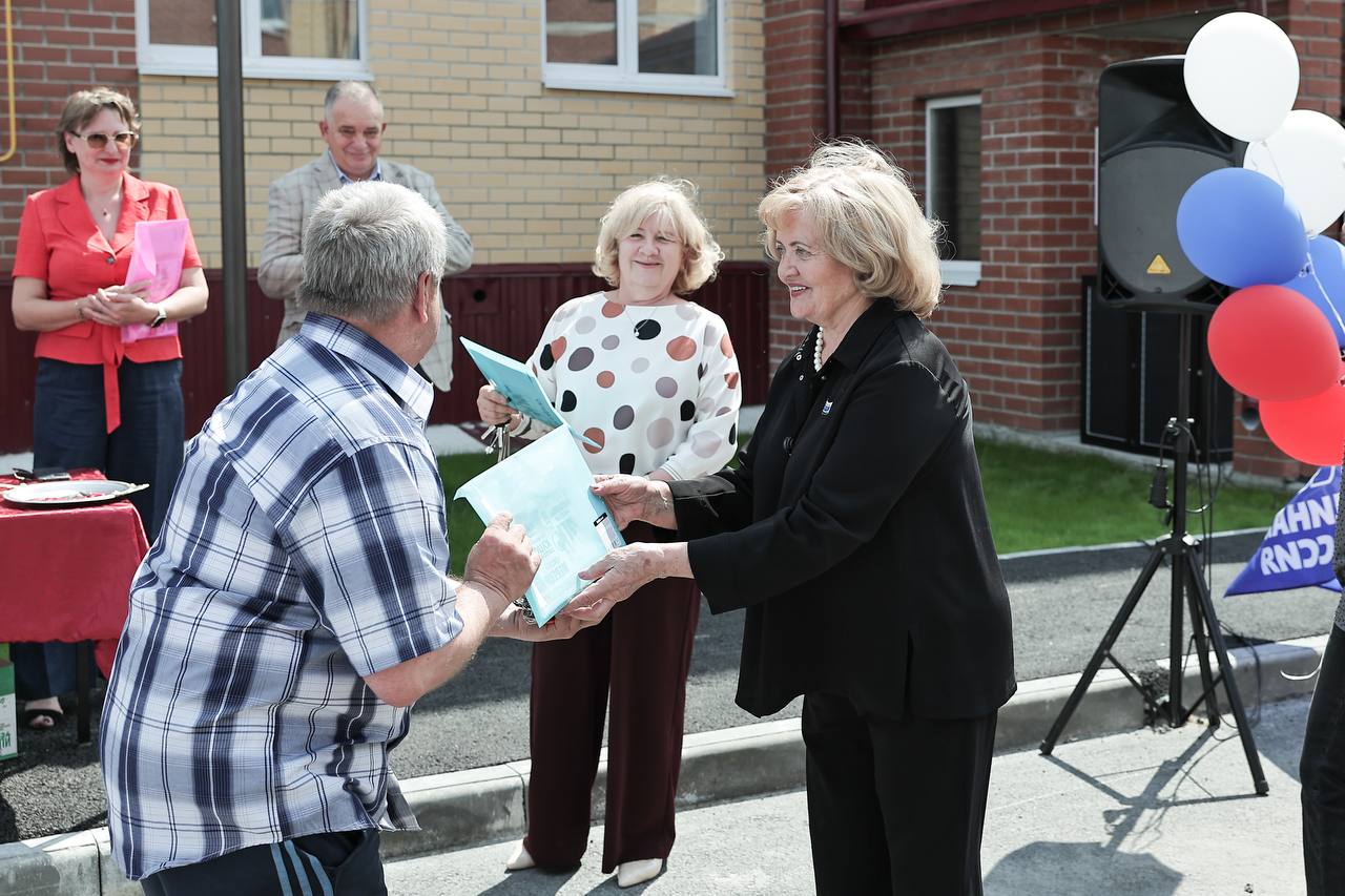 «Уважаемые новосёлы, я очень рада сегодня приехать сюда и вручить вам ключи. Завершается этот этап программы переселения из аварийного и ветхого жилья, в рамках которого в новые квартиры переселены 894 жителя Талицкого муниципального округа. Я бы хотела, пользуясь случаем, сказать слова благодарности застройщику Андрею Анатольевичу Яровикову и его компании. Мы иногда с ним спорим, но то, что он хорошо строит, – это не отнимешь. Здесь уже сделаны газоны, положен асфальт и сделано всё необходимое. Я желаю всем, кто заселится в этот дом, чтобы вы жили хорошо и счастливо, чтобы у вас было время общаться с соседями и гулять по этой замечательной территории», – отметила Людмила Бабушкина.