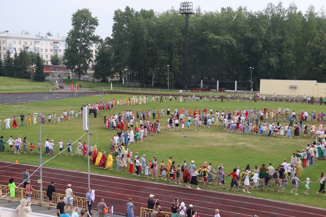 Раннее праздничное утро он встретил в городе атомщиков – Лесном, который присоединился к акции «Уральский хоровод», проводимой Госкорпорацией «Росатом» в честь своего 80-летия. Масштабное и заряжающее своей энергетикой зрелище объединило более 1 300 человек разных поколений. В огромном хороводе под открытым небом кружились воспитанники творческих коллективов и спортивных школ, студенты МИФИ и молодые семейные пары, сотрудники комбината и бюджетных учреждений, а также руководители всех рангов, включаю главу города Сергея Черепанова и депутатов всех уровней.