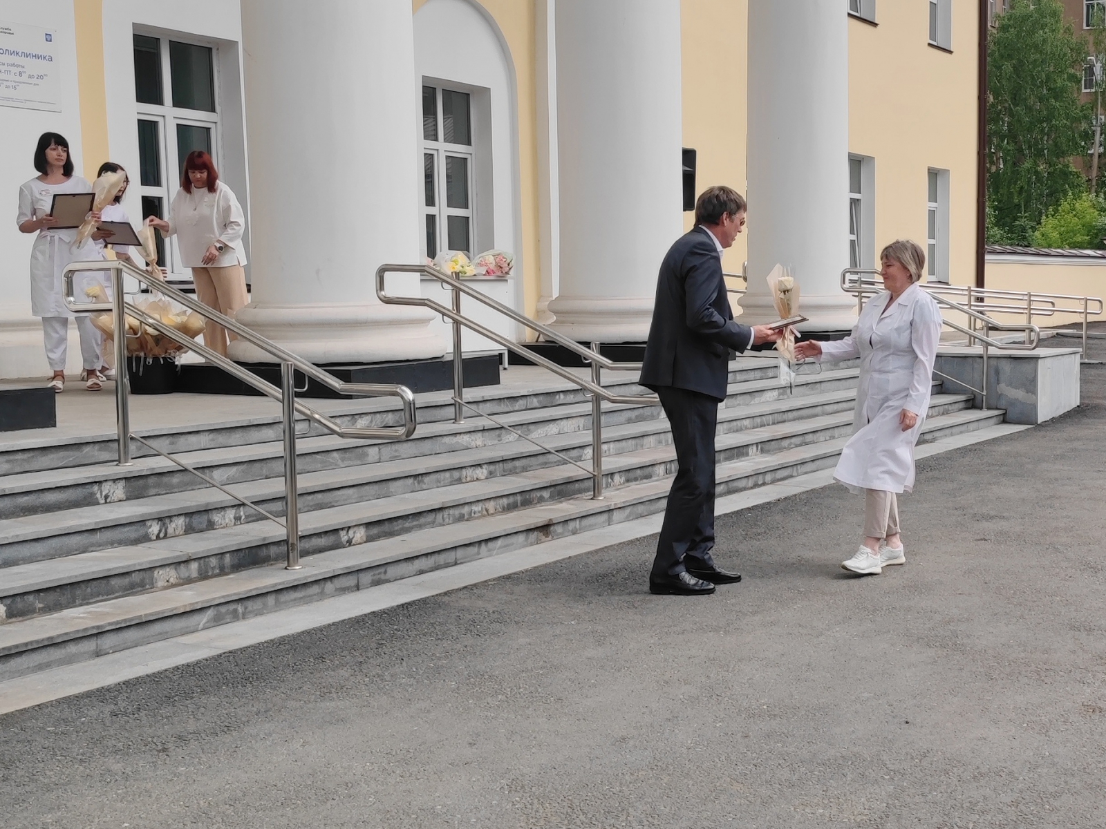 После открытия флигелей состоялось торжественное вручение наград разных уровней в честь прошедшего дня медицинского работника коллективу Демидовской больницы. По поручению председателя Законодательного Собрания Свердловской области Людмилы Бабушкиной Вячеслав Малых вручил Благодарственные письма ряду специалистов.