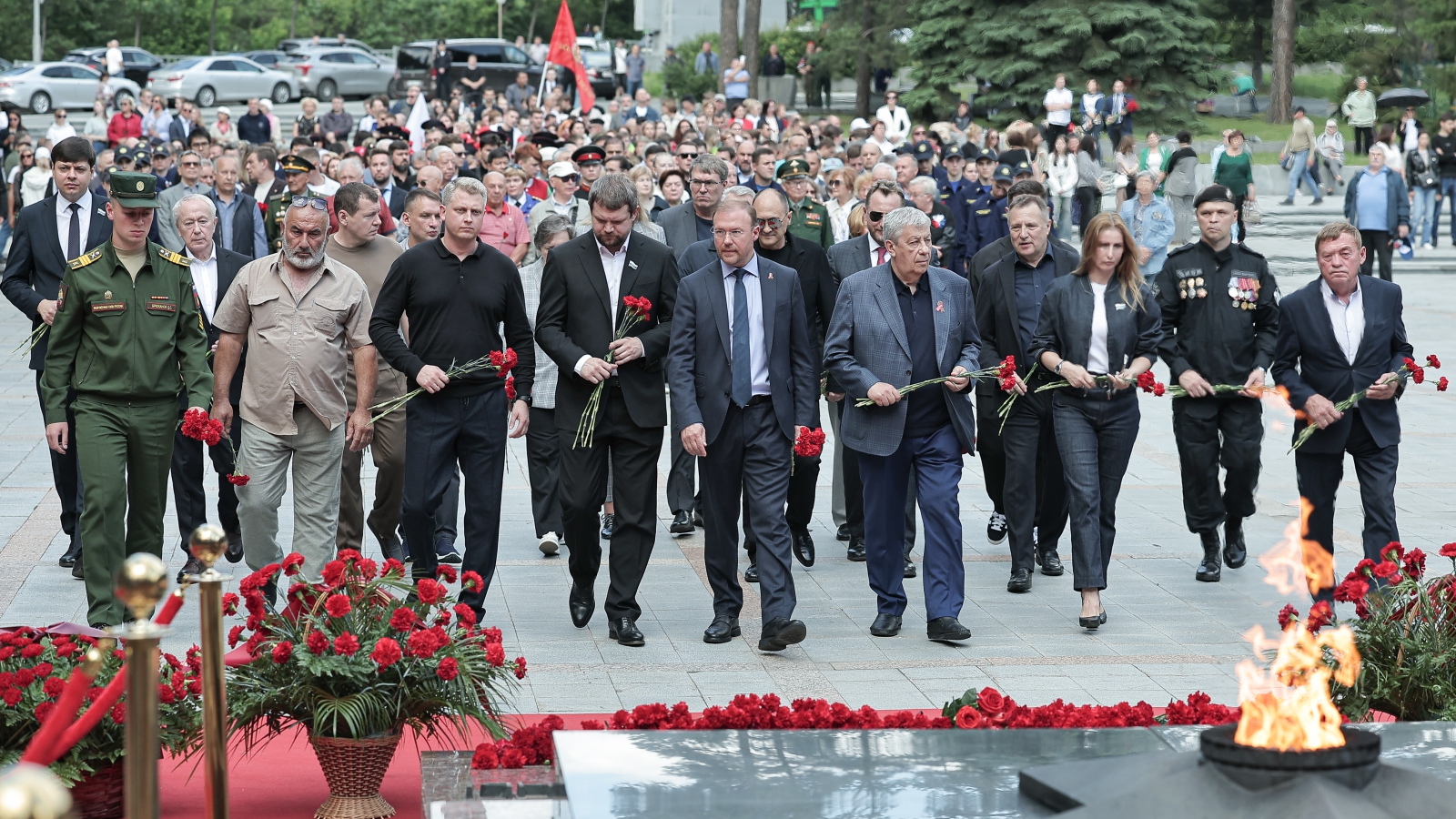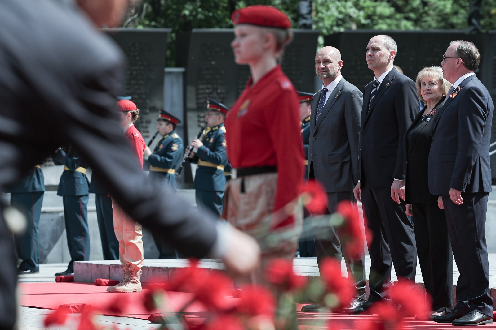 Полномочный представитель Президента РФ в УрФО Артём Жога, врио губернатора Денис Паслер и председатель Законодательного Собрания Людмила Бабушкина в День памяти и скорби возложили цветы к Широкореченскому мемориальному комплексу.