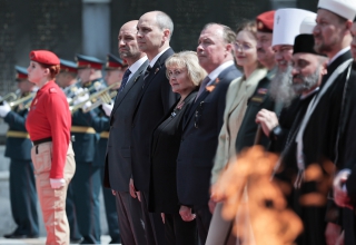 Участие в траурно-торжественном мероприятии приняли также депутаты, общественники, представители органов власти и религиозных конфессий, военнослужащие и ветераны, сотни жителей области.