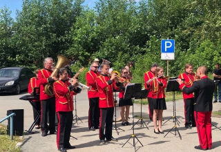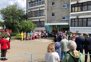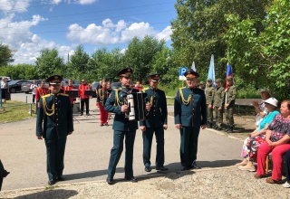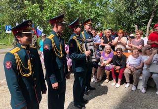 В честь векового юбилея под окнами его дома состоялся концерт военного оркестра. Музыканты исполнили главные военные композиции.