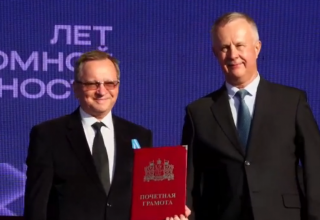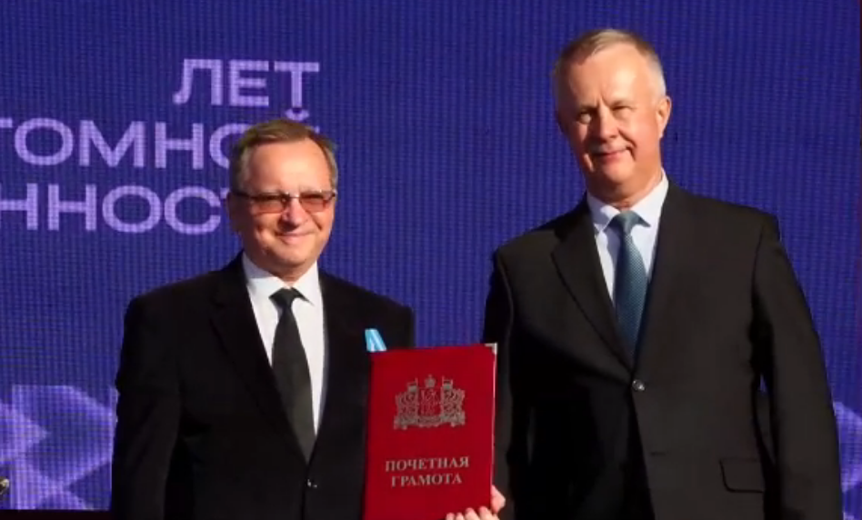 Поздравительный адрес от генерального директора ГК «Росатом» Алексея Лихачева главе муниципалитета Вячеславу Тюменцеву передала вице-президент по управлению персоналом ТВЭЛ Наталия Собакинская.