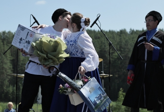 Сегодня же на празднике была создана новая семья в Богдановичском муниципальном округе – свой брак зарегистрировали Георгий Поварь и Дарья Косоурова. Свадебная церемония прошла в казачьих традициях.