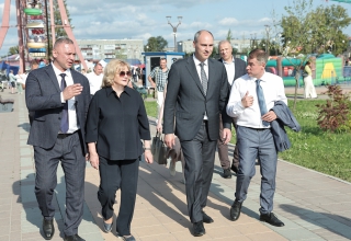 Врио губернатора и спикер парламента прошлись по Парку культуры и отдыха, где разместились главные городские гуляния, и пообщались с гостями праздника.