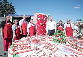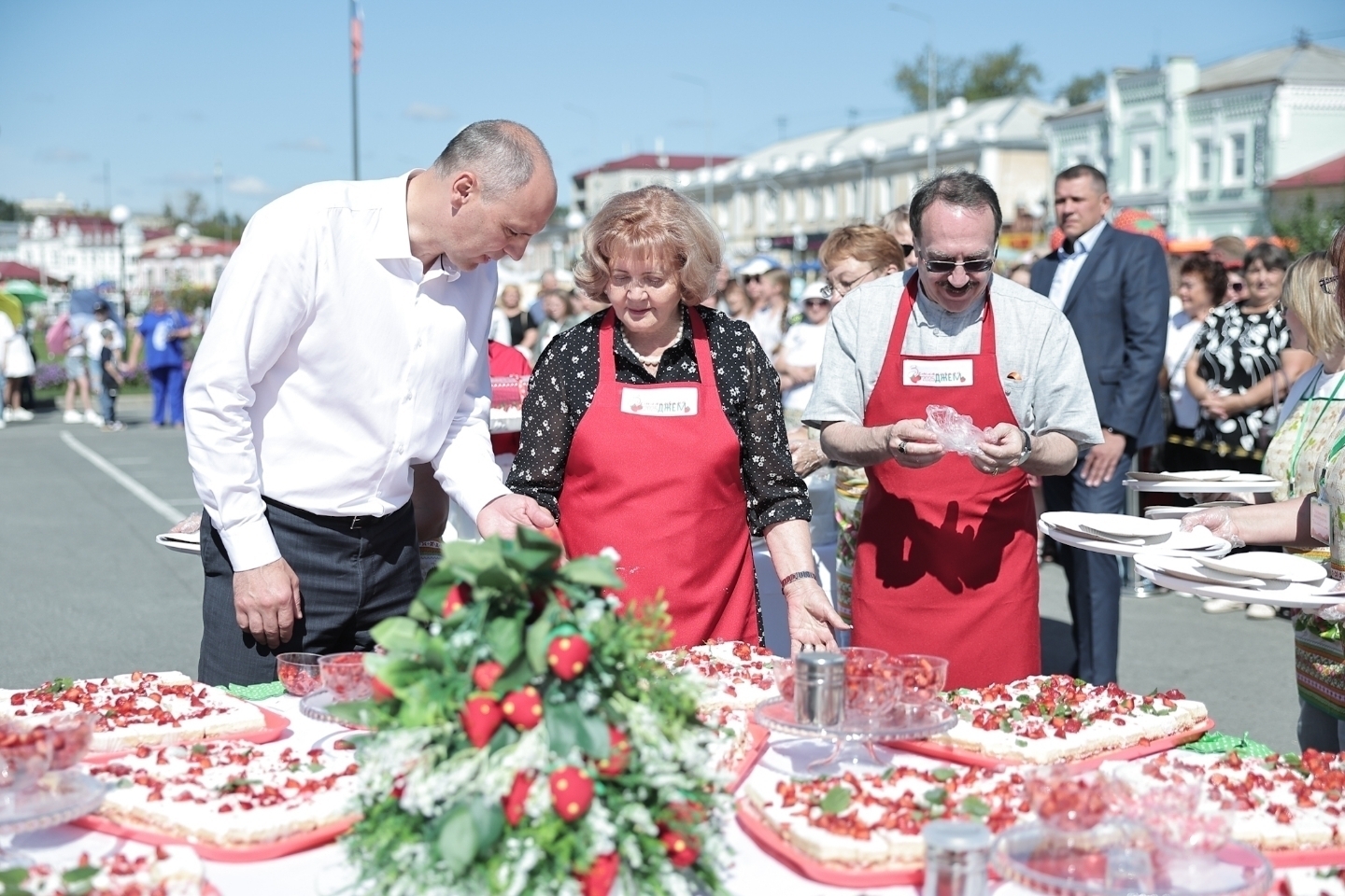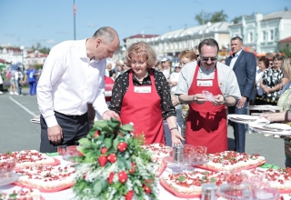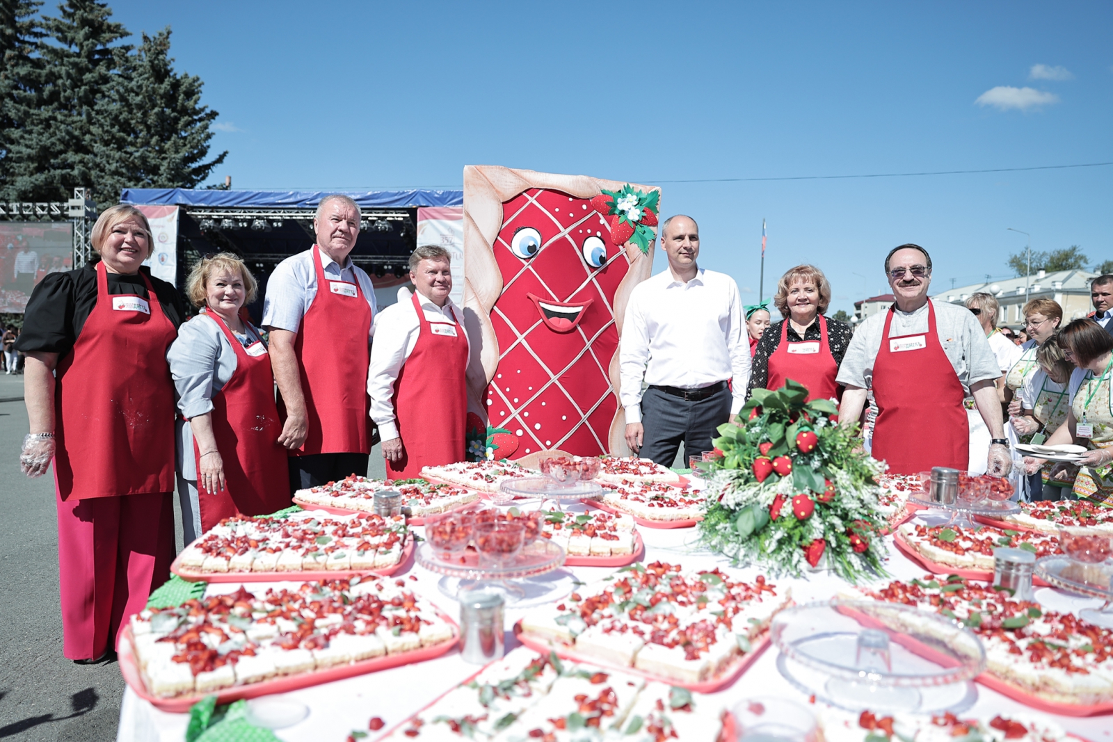 В 2025 году слоган фестиваля – «В объятиях земляничного аромата и вкуса». Более ста мастеров привезли свои изделия и сувениры. В течение сегодняшнего дня умельцы проводят мастер-классы, угощают гостей, а их ожидается около пяти тысяч, ароматным чаем с травами и земляничным вареньем. Чтобы подчеркнуть тему объятий знаменитый большой пирог с земляничным джемом впервые испекли круглым, а не квадратным. Денис Паслер и Людмила Бабушкина приняла участие в особой церемонии украшения «Пирога объятий».