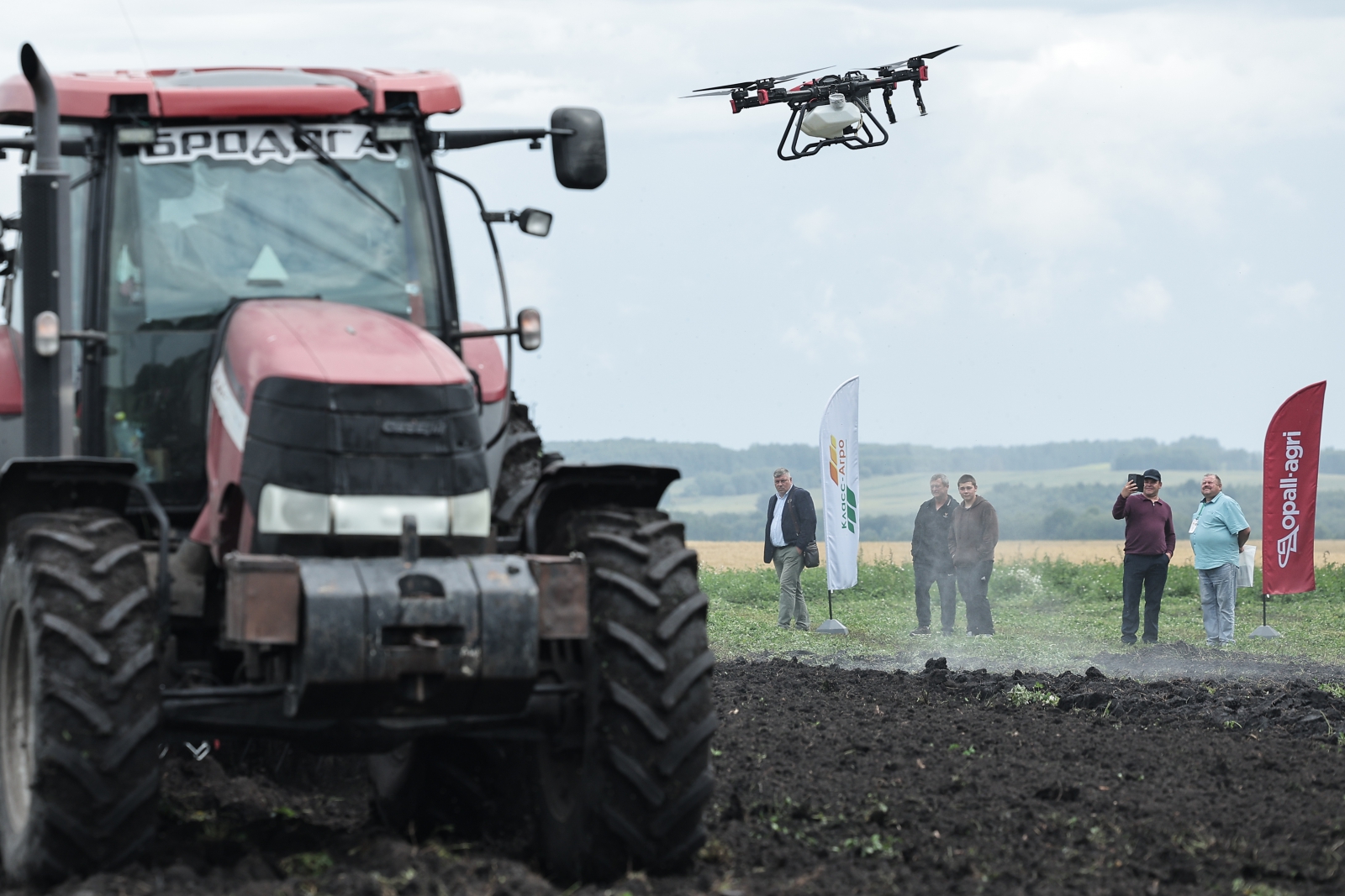 Одним из ключевых экспонатов, представленных на открытии семинара-выставки, стал сельскохозяйственный квадрокоптер, разработанный малым инновационным предприятием «Уралагродрон» совместно с Уральским государственным аграрным университетом. Агродрон XAG P100 оснащённый 40-литровым баком, способен обработать до 24 гектаров земли в час. Использование квадрокоптера при поливе пашни обеспечивает экономию воды до 90% и защищает посевы от вытаптывания. Благодаря системе RTK в ходе обработки земли обеспечивается высокая равномерность распыления, за счёт возникающих при работе двигателей турбулентных потоков капли рабочего раствора попадают на труднодоступные участки растений – нижний ярус и нижнюю поверхность листьев.