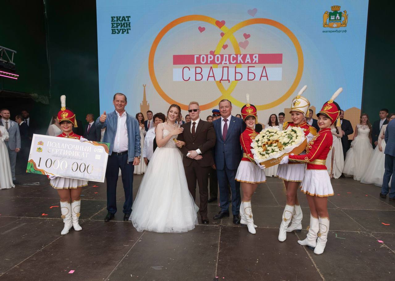 Со сцены также поприветствовали выдающихся жителей районов Екатеринбурга и молодожёнов, которые решили связать свои судьбы семейными узами в День города.