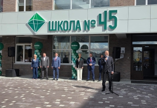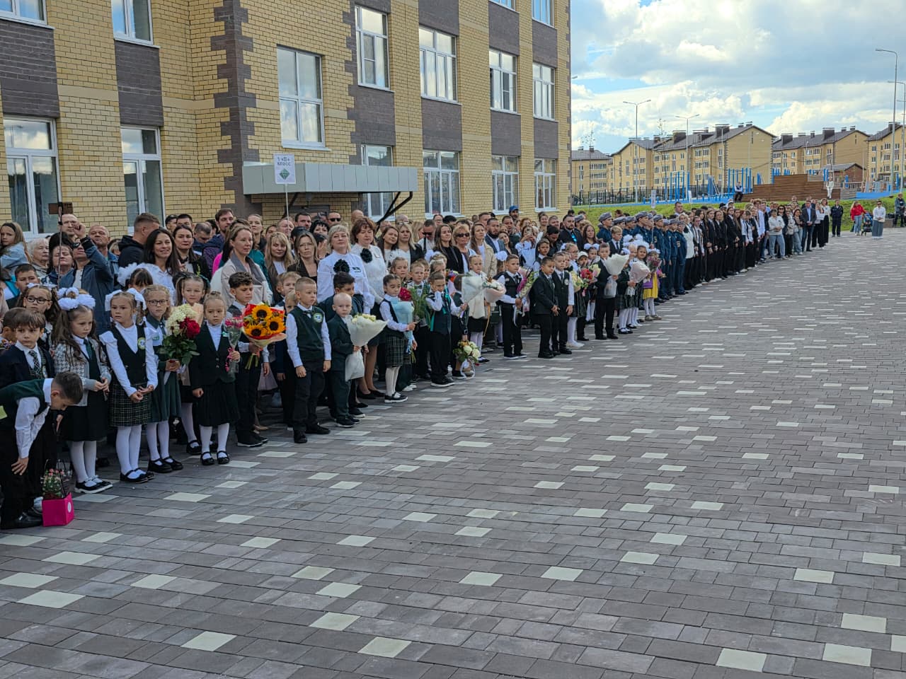На торжественной линейке депутат, обращаясь к ученикам, сказал: «Мы строили эту школу с любовью, с хорошим качеством. Берегите нашу родную школу, ведь вместе мы будет здесь много лет. С праздником, с Днём знаний!»