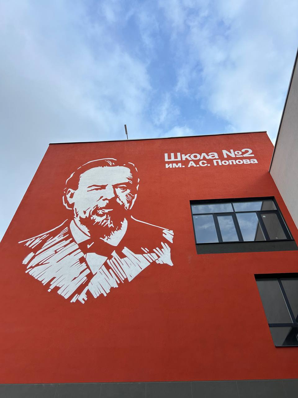 Строительство началось в 2022 году и завершено в срок. Новый корпус оснащён просторными учебными кабинетами, современной столовой, спортивным залом и игровыми площадками. Школа носит имя Александра Попова, выдающегося изобретателя, и станет важным образовательным и культурным центром города.
