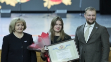 В рамках юбилейного для центра народных искусств года Людмила Бабушкина вручила сотрудникам почётные грамоты, благодарственные письма и другие награды. Так, серебряный знак Законодательного Собрания Свердловской области получила заслуженная артистка РФ, артистка оркестра Уральского государственного русского оркестра Юлия Егорова.