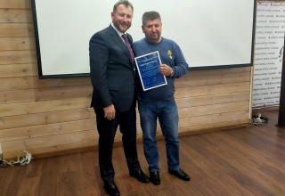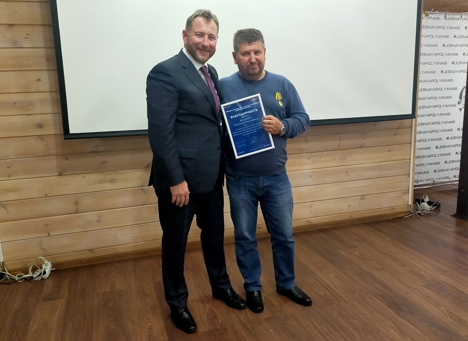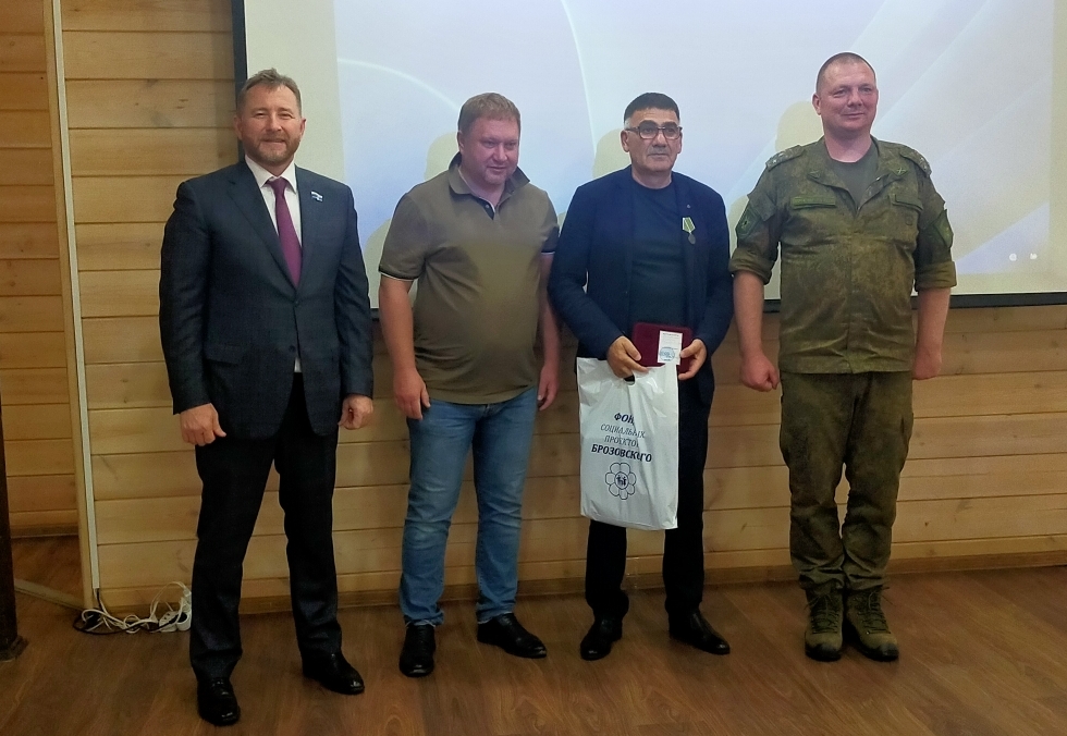 Депутат Брозовский и командир зенитно-ракетного полка Юрий Семенов вручили отличившимся волонтёрам-предпринимателям медаль Министерства обороны Российской Федерации «За вклад в укрепление обороны Российской Федерации», медали «За помощь фронту» и «За содействие СВО».