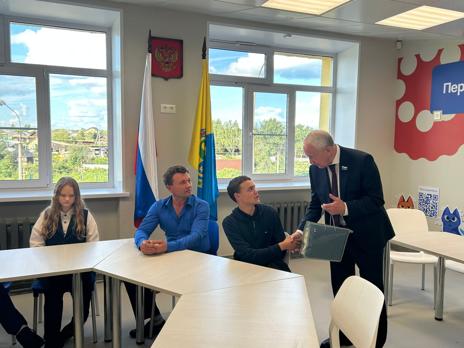 Во время рабочей поездки в День знаний в пгт Горноуральский преседателя комитета по социальной политике Вячеслава Погудина состоялась встреча с детьми из многодетных семей и их родителями в рамках проведения всероссийской акции «Собери ребёнка в школу».