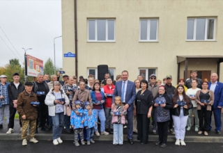 Депутат Законодательного Собрания Елена Трескова вместе с Главой Тавдинского муниципального округа Валентином Мироновым, председателем местной Думы Дмитрием Нохриным, председателем Общественной палаты муниципального округа Виктором Лачимовым вручили ключи новосёлам и поздравили их с этим важным желанным и радостным событием.