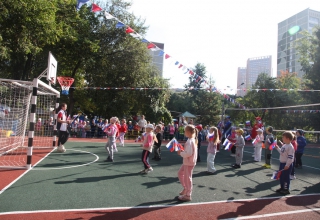 На многофункциональной спортивной площадке со специальным покрытием дети могут заниматься бегом, играть в футбол, волейбол, баскетбол и другие спортивные игры. У ребят появились тренажёры, теннисные столы, гимнастическая скамья. Для коллектива детского сада и родителей открытие детского спортивного комплекса стало настоящим прорывом. Это уже новый уровень физической закалки дошколят. В честь такого радостного события педагоги и детишки подготовили спортивный праздник.