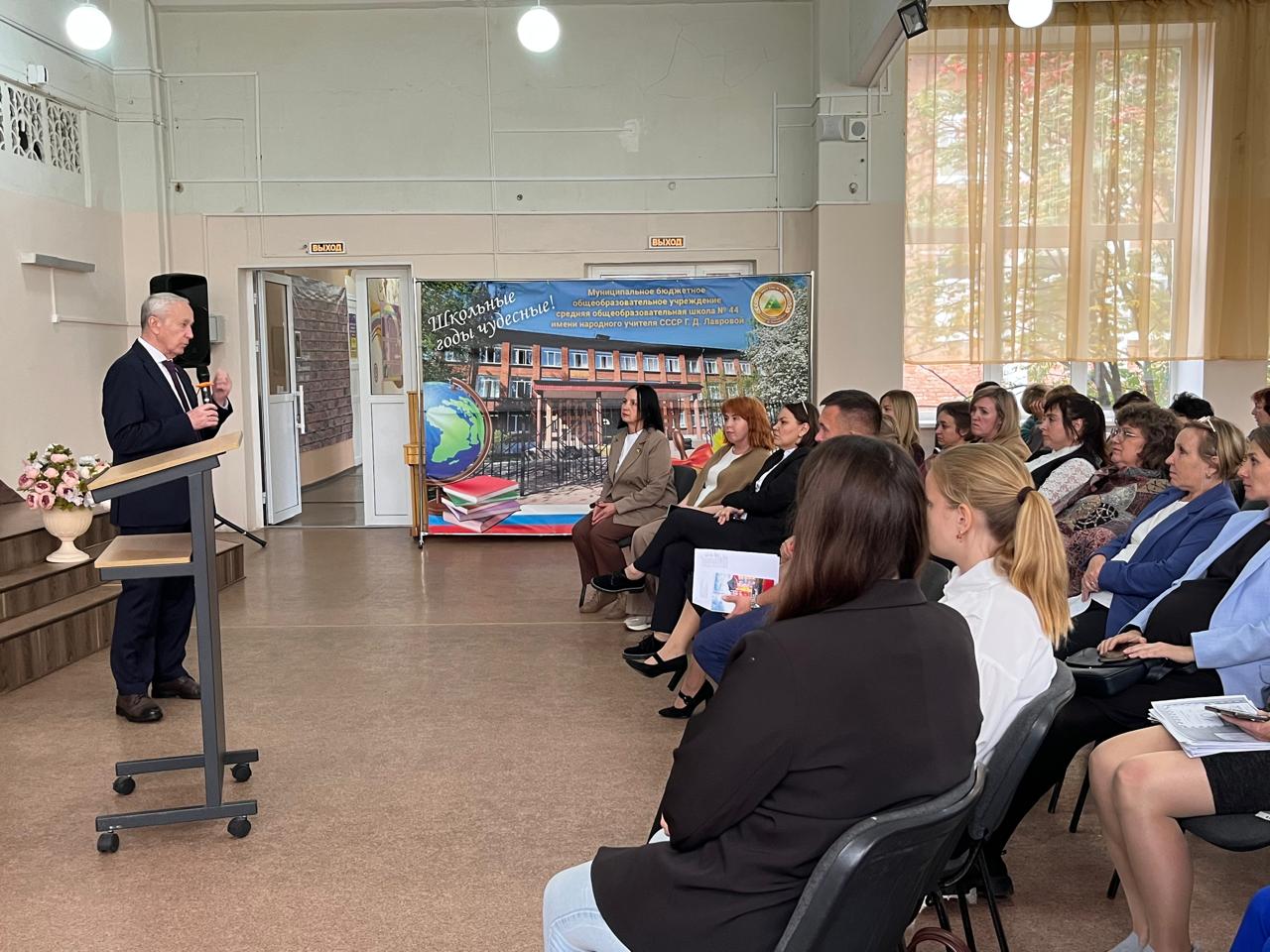 В Нижнем Тагиле Вячеслав Погудин встретился с педагогическим коллективом школы № 44 им. народного учителя Г.Д.Лавровой. Во встрече приняли участие директор школы Наталья Самарджева и представитель управления образования города Татьяна Басова.