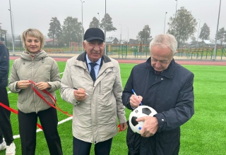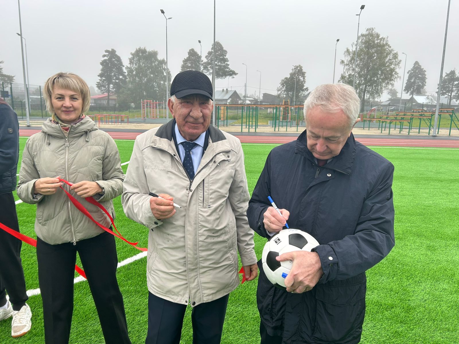 В муниципальном округе Горноуральский состоялось замечательное событие – открытие обновлённого школьного стадиона «Олимп». На торжественном открытии в школе № 6 посёлка Новоасбест Вячеслав Погудин и Владимир Радаев поздравили юных спортсменов и коллектив школы с этим событием.