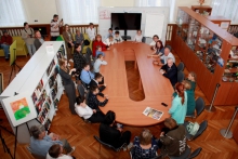 Выставка проходила в библиотеке имени В.Г. Белинского. Вячеслав Погудин пообщался с авторами представленных картин.