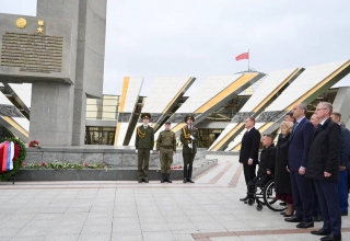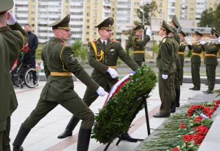 Церемония возложения венков и цветов открыла первый день работы делегации Свердловской области во главе с губернатором Денисом Паслером в Минске, где сейчас проходит международная промышленная выставка «ИННОПРОМ. Беларусь».