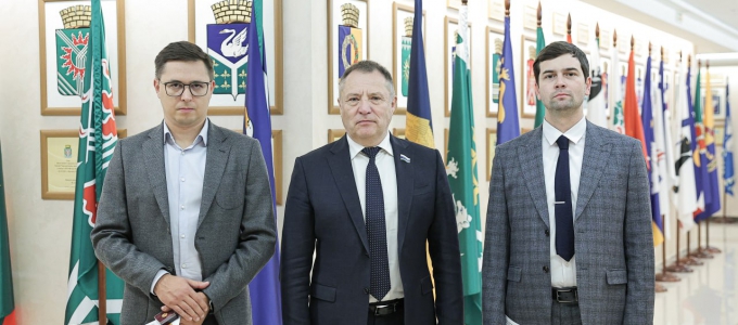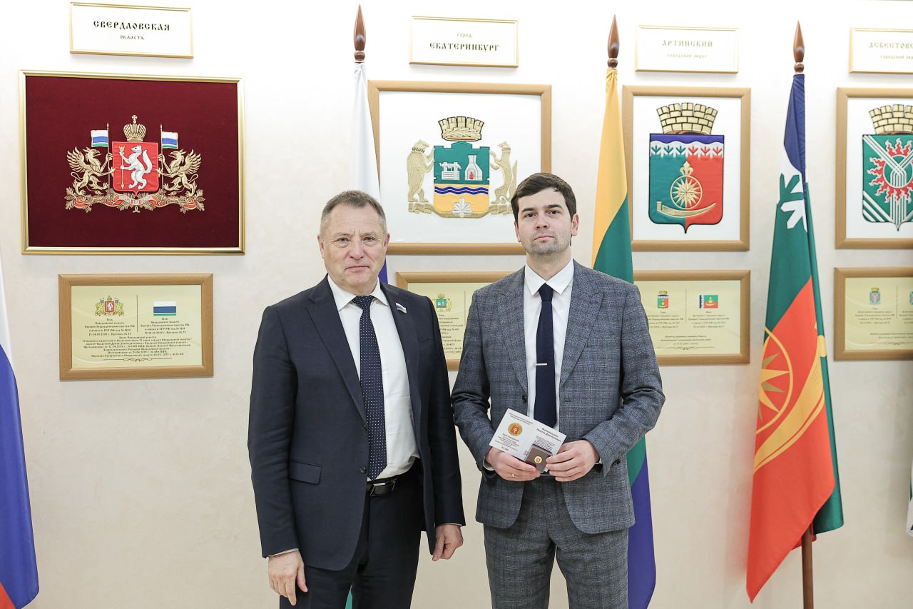 По поручению председателя Законодательного Собрания Людмилы Бабушкиной депутат Вячеслав Вегнер вручил Почётный знак парламента «За заслуги в волонтёрской деятельности» Михаилу Пьянникову и Никите Филимошкину - разработчикам беспилотных летательных аппаратов.