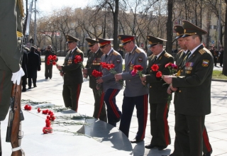 Возложение цветов к памятнику Маршалу Советского Союза Г.К. Жукову