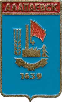 7 июля 1783 г. вместе с другими гербами Пермского наместничества был Высочайше утвержден герб, составленный А.А. Волковым, исполняющим обязанности герольдмейстера. В верхней части щита помещался герб Пермский, а в нижней — «в зеленом поле железный молот, которым выделывается железо, означающий, что в сем городе находится железоделательный завод». В 1862 г. в рамках гербовой реформы Кёне был составлен проект нового городского герба, оставшийся неутвержденным: «В зеленом поле крест, состоящий из серебряных и черных железных шапочек, сопровождаемый в углах четырьмя золотыми молотками с таковыми же ручками. В вольной части герб Пермской губернии. Щит украшен червленою башенною короною — о трех зубцах. За щитом две на крест положенныя золотыя кирки, соединенныя Александровскою лентою». Изменение композиции проекта относительно герба 1783 г. было обосновано следующим образом: «Так как изображенный в сем гербе железный молот нельзя причислить к числу геральдических фигур, то полагаю заменить оный четырьмя молотками». 25 октября 1967 г. решением исполнительного комитета Алапаевского городского Совета депутатов трудящихся Свердловской области № 336 в качестве городского герба была утверждена эмблема, созданная Ю.П. Абрамовым. Оригинальное изображение этого символа, по всей видимости, не сохранилось. В Приложении к решению горисполкома представлено следующее описание: «1. Общий вид герба имеет форму щита. Ширина вверху 50 см, внизу 44 см, с красным знаменем, обозначающим революционное прошлое нашего города. 2. Силуэт АМЗ (40 см на 32 см), обозначающий металлургическую промышленность города. Шестерня — обозначает машиностроение и станкостроение города. 3. Колос — обозначает сельское хозяйство города и района, высота колоса — 40 см. 4. Зеленое поле и ель — обозначают лесную и деревообрабатывающую промышленность. 5. В центре на темно-бордовом фоне сделана подпись белым цветом “Алапаевск” (36 см на 8)». Со временем претерпела изменение окраска фона, добавилась дата основания первого поселения на месте города — «1639», была несколько расширена трактовка включенных в городскую эмблему символов: «…Красное знамя на штыке — символ того, что Алапаевск — родина первых Советов на Урале, символ революционных и боевых заслуг; голубой фон герба означает, что город основан и развился между реками Алапаиха и Нейва». Изображение описанного символа в его последней редакции было помещено на памятном знаке при въезде в город. В начале 1990-х гг. герб 1783 г. изображался на бланках учетно-распорядительной документации, но каких-либо данных об его официальном восстановлении как городского символа не найдено. |