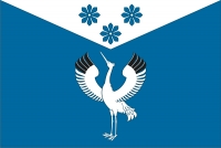 ![]() Полотнище синего цвета с отношением ширины к длине 2:3, несущее у древка стилизованное изображение решетки бороны габаритным размером в ¼ полотнища; посередине оставшейся синей части помещено изображение журавля, выполненное белым, красным и черным цветами. |