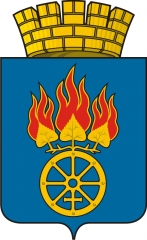Работа над современными гербом и флагом | Работа над современными гербом и флагом началась в январе 2002 г. Попытки сохранить элементы эмблемы 1996 г. не увенчались успехом. Не получили дальнейшего развития также и проекты, в которых главными фигурами были изображения террикона, шахтных сооружений и ящерицы. В итоге был принят самый лаконичный вариант из составленных в ходе работ проектов. Синий цвет его поля символизирует собой мирный труд горожан и их достоинство. Шахтное колесо служит эмблемой горных выработок, а именно добычи медных руд, на что указывает крестчатая форма нижней спицы колеса, образующей вкупе с его втулкой «зеркало Венеры» — древний знак меди. Пылающая березовая ветвь указывает на основание города как поселения углежогов, а также намекает на имя города, поскольку для получения дегтя преимущественно использовалась древесина березы. |