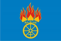 ![]() В лазоревом поле золотая, о трех листах, охваченных червленым, с золотой каймой, пламенем, березовая ветвь, вырастающая из золотого колеса о восьми спицах, из которых нижняя соединена ещё с одной спицей крестообразно. |