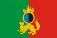 ![]() В рассечённом зеленом и червленом поле, золотой с червлёным языком бегущий соболь, несущий на спине золотое кольцо, охваченное вверху тройным пламенем того же металла и заполненное справа – лазурью; слева – черным цветом. |